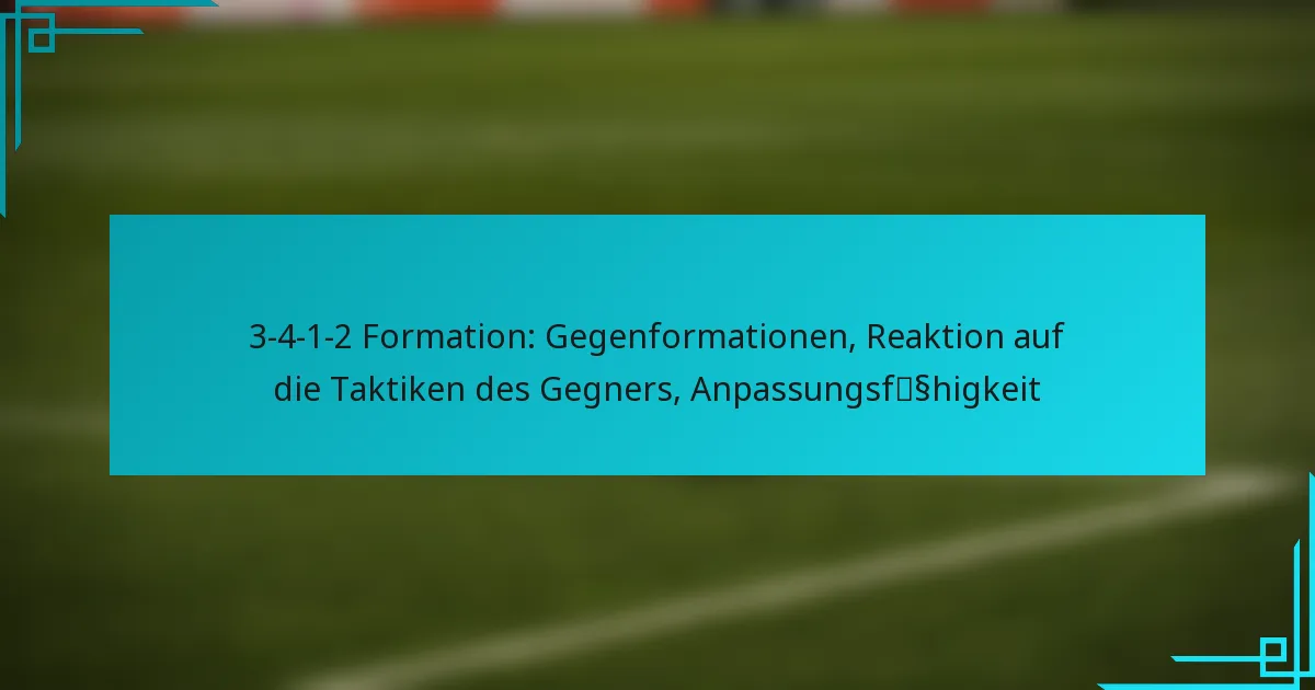 Die 3-4-1-2-Formation ist ein taktisches Setup im Fußball, das drei Innenverteidiger, vier Mittelfeldspieler, einen offensiven Mittelfeldspieler und zwei Stürmer umfasst und ein Gleichgewicht zwischen defensiver Stärke und offensivem Potenzial bietet. Um diese Formation effektiv zu kontern, können Teams Strategien wie die 4-3-3 oder 4-2-3-1 anwenden, die jeweils darauf ausgelegt sind, die Schwächen der 3-4-1-2 auszunutzen. Anpassungsfähigkeit ist entscheidend, da Teams ihre Taktik basierend auf den Bewegungen und Formationen des Gegners anpassen müssen, um ihre Erfolgschancen zu maximieren.
